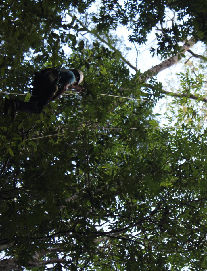 La expedición que Gorgens emprendió con un equipo de 30 personas recuerda a aquellas de los naturalistas europeos del XIX. “Fue un viaje muy difícil porque es una región completamente aislada”, recalca. Ni siquiera hay tribus no contactadas. Una docena de miembros de la comunidad local de São Francisco de Iratapuru, expertos en navegación, les guiaron durante los cinco días río arriba por el Jarí y los dos de caminata tierra adentro. El resto eran dos escaladores, especialistas en trepar árboles de la Amazonia para medirlos sin dañarlos, investigadores de cinco universidades federales brasileñas, de institutos públicos de investigación, de Cambridge, Oxford, dos bomberos militares y un equipo del canal de televisión Globo.