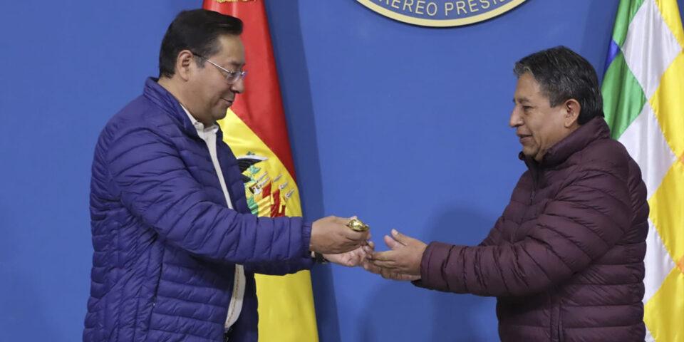 “Entregamos el Bastón de Mando a nuestro jilata vicepresidente, David Choquehuanca, antes de viajar a Nueva York, #EEUU, para participar del 78 periodo de sesiones de la Asamblea General de las Naciones Unidas”, escribió en sus redes sociales en Jefe de Estado.