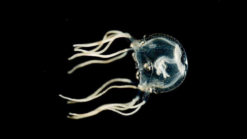 Las ‘Tripedalia cystophora’, muy pequeñas y venenosas, habitan en el mar Caribe y se alimentan de crustáceos que viven en las raíces submarinas de los manglares, por lo que tienen que maniobrar constantemente para no dañar su blando cuerpo. Al igual que otras medusas, no tienen cerebro y controlan sus cuerpos a través de una red distribuida de neuronas.