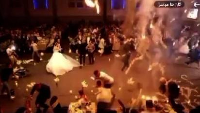 La cadena transmitió posteriormente imágenes aparentemente grabadas por uno de los invitados, en las que se ven fuegos artificiales que se elevan desde el piso en el lugar del evento y que encendieron un candelabro que colgaba del techo ante la mirada horrorizada de las personas reunidas en el interior.