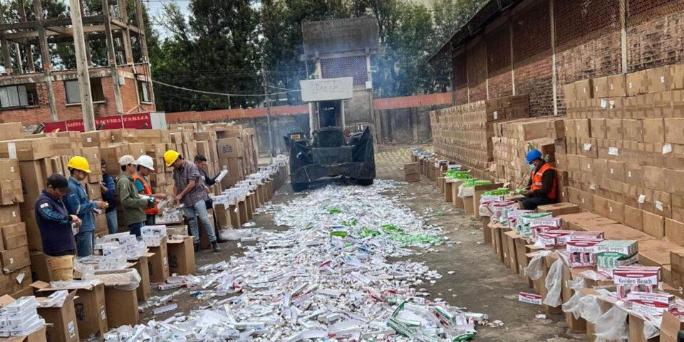 La Paz, 4 de nov 2023 (ATB Digital).- La administración de la Aduana de Santa Cruz dio inicio a la destrucción de 36 toneladas de cigarrillos ilegales provenientes de Paraguay. Este volumen equivale a Bs 1,3 millones.