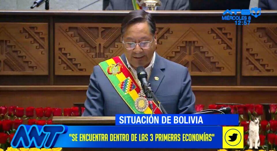 La Paz, 8 nov 2023 (ATB Digital).- El presidente Luis Arce Catacora destacó en su informe que Bolivia se encuentra entre las primeras tres economías de la región.