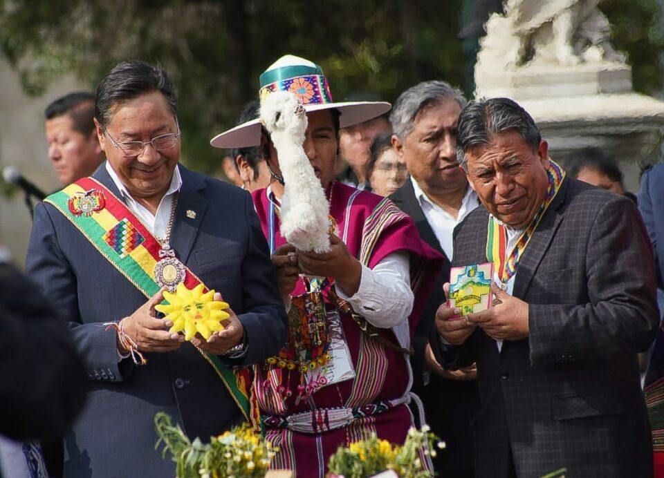 Ambas autoridades comenzaron el acto conmemorativo a los tres años de su gestión con la entrega de ofrendas a la Pachamama, en una ceremonia presidida por amautas y líderes ancestrales. La actividad contó con la presencia ministros, viceministros, organizaciones sociales, entre otras autoridades.