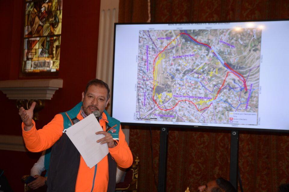 Añade que la situación podría causar graves daños o pérdidas a la infraestructura privada e infraestructura pública. Durante una explicación, el personal municipal enfatizó que la emergencia no es reciente, data de 2021. El problema fue expuesto en un conversatorio vecinal organizado por la Alcaldía en el Macrodistrito San Antonio.