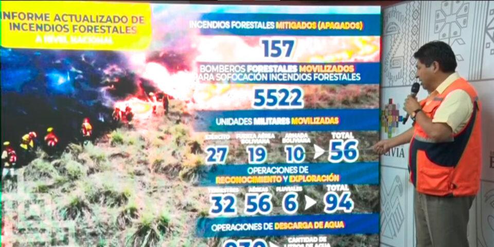En las tareas de sofocación trabajaron bomberos de las Fuerzas Armadas, de la Policía Boliviana y los voluntarios. Desde junio hasta la fecha fueron sofocados 157 incendios forestales con la movilización de 5.522 bomberos.