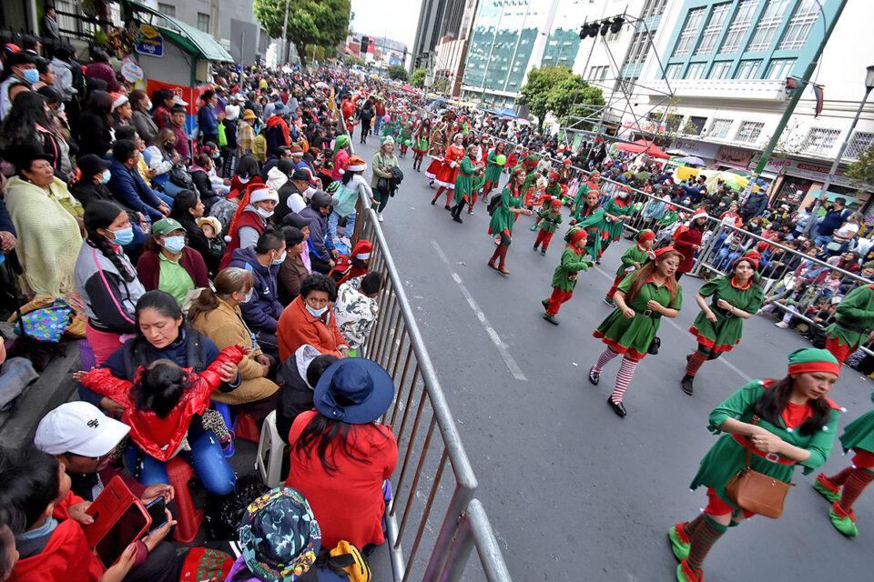 La Paz, 25 noviembre 2023 (ATB Digital).- Las calles de La Paz se llenaron este viernes del color, música y alegría mostrados por miles de artesanos y comerciantes que participaron en un desfile disfrazados de Papá Noel, el Grinch, pastorcillos o muñecos de nieve, con el que se inauguró la temporada navideña en esta ciudad de Bolivia.