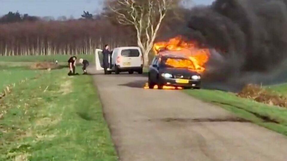 Paises Bajos, 01 de enero 2024 (ATB Digital).- Según indicó el medio alemán Bild, el conductor arrojó por la ventanilla una colilla sin apagar mientras conducía, pero el viento la devolvió a la cabina del coche y cayó sobre los fuegos artificiales.
