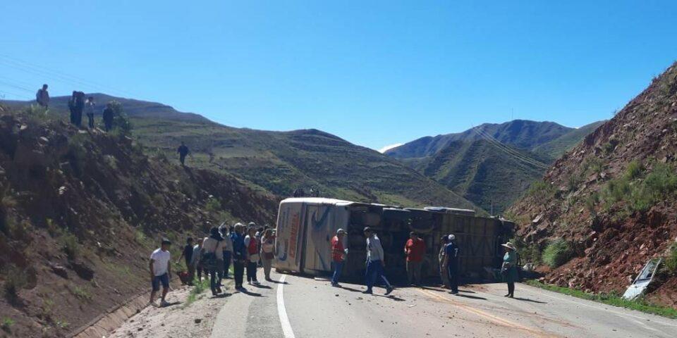 El bus quedó destrozado tras el vuelco que sufrió. Algunos de los pasajeros pidieron ayuda mediante redes sociales y solicitaron ambulancias para evacuar a los heridos.