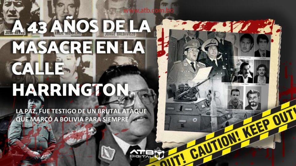 La Paz, 16 de ene 2024 (ATB Digital).-En un nuevo episodio de nuestra serie dedicada a la historia boliviana, nos sumergimos en un capítulo sombrío que, a pesar del paso de 43 años, persiste en la memoria colectiva del país. Abordaremos la masacre ocurrida el 15 de enero de 1981 en la Calle Harrington, un trágico suceso que dejó marcada a Bolivia para siempre y cuestiona hasta hoy los límites de la justicia y la resistencia.