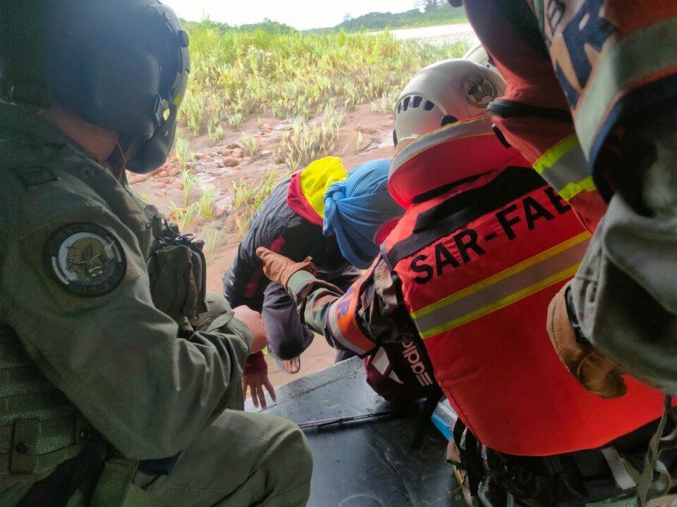 El comando conjunto, en coordinación con el Viceministerio de Defensa Civil, se movilizó con el apoyo de un helicóptero Súper Puma de la Fuerza de Tarea Aérea Diablos Rojos para evacuar a los “dragueros”, que estaban atrapados en medio del río.