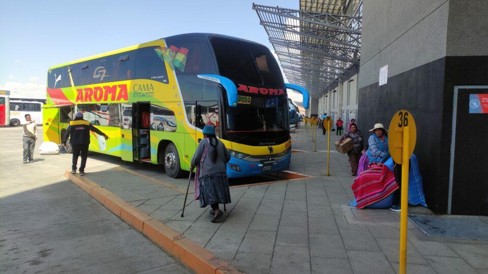 Según reporte de la Policía Boliviana, indica un comunicado, desde esta terminal no hay salidas debido a bloqueos en parte de la Red Vial Fundamental (RVF); no obstante, sí se desarrollan viajes a Oruro.