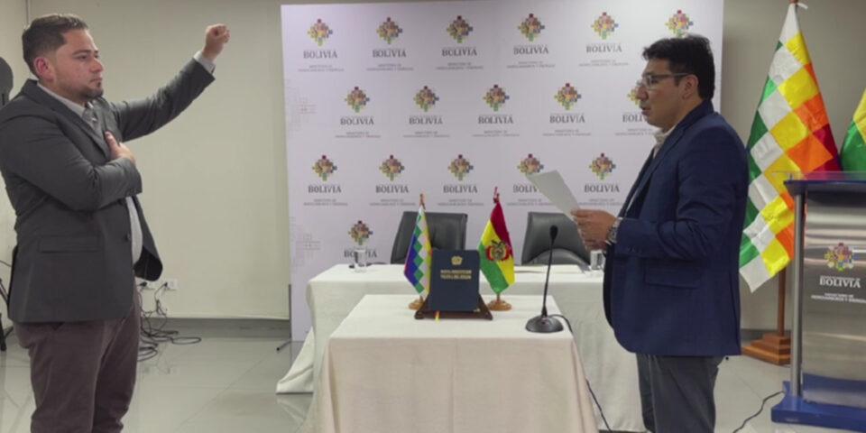 La Paz, 03 feb 2024 (ATB Digital). – El ministro de Hidrocarburos y Energía, Franklin Molina, posesionó este sábado a Adams Hurtado Morales como nuevo viceministro de Industrialización, Comercialización, Transporte y Almacenaje de Hidrocarburos. La nueva autoridad comprometió trabajar para garantizar el abastecimiento de combustibles e impulsar proyectos de industrialización.