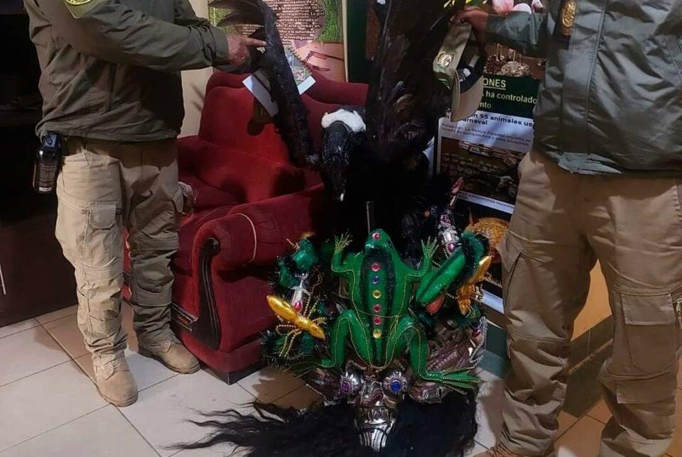 Oruro, 10 de feb 2024 (ATB Digital).- La mañana del sábado de Peregrinación, la Policía Forestal y de Preservación del Medio Ambiente (POFOMA) arrestó a un bailarín en el Carnaval de Oruro que poseía en su traje un Cóndor Andino.