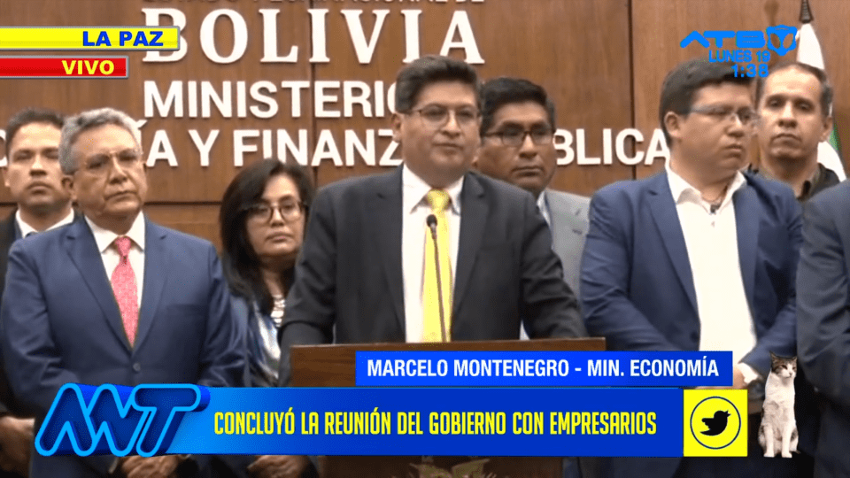 La Paz, 19 de feb 2024 (ATB Digital).- El ministro de Economía y Finanzas Públicas, Marcelo Montenegro, junto con representantes de la Confederación de Empresarios Privados, ha anunciado un conjunto de diez medidas destinadas a enfrentar la actual escasez de dólares en el país. Este anuncio es el resultado de una serie de reuniones entre los principales actores del sector económico y las autoridades gubernamentales, en un esfuerzo por buscar soluciones conjuntas a los desafíos económicos que enfrenta la nación.