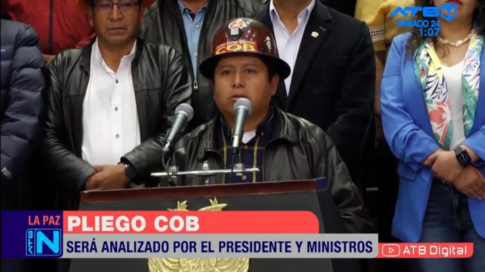 La Paz, 24 de feb 2024 (ATBDigital).- Este jueves 22 de febrero la dirigencia de la Central Obrera Boliviana (COB) presentó al Gobierno un pliego petitorio donde se propone un aumento del 8% al salario mínimo nacional y 7% al haber básico de esta gestión.