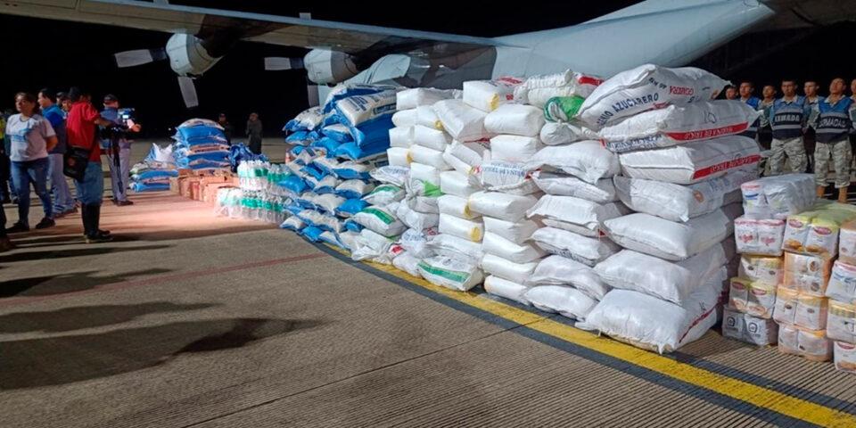 El Gobierno nacional envió anoche ocho toneladas de ayuda humanitaria a Cobija, valuada en Bs 53.500, que consiste en harina, arroz, fideo, azúcar, agua en bidones, leche en polvo y aceite en botellas.