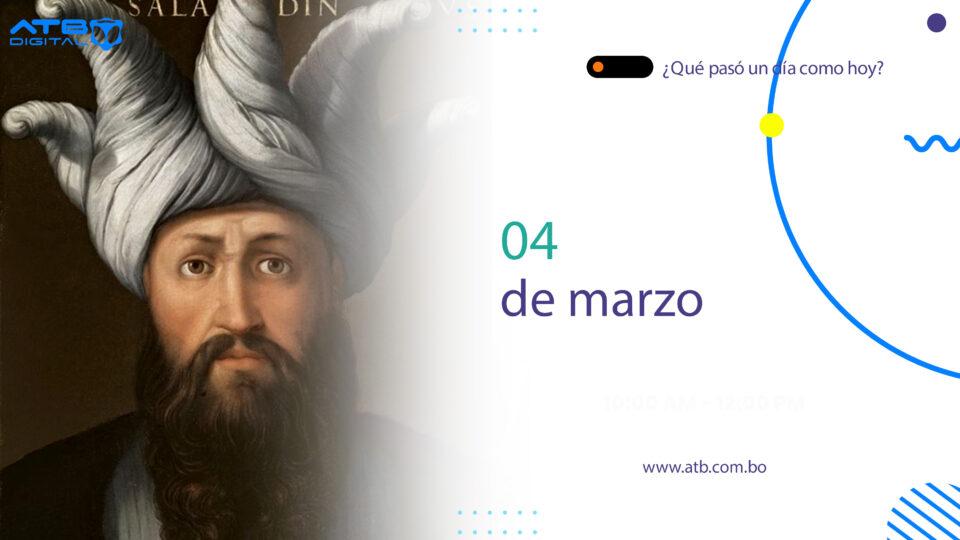 Un día como hoy04 DE MARZO marzo 5, 2024marzo 5, 2024 Compartir 🔊 Escuchar la nota En 1193, muere el sultán Saladino En 1832, muere Jean-François Champollion, descifrador de la escritura jeroglífica En 1861, Abraham Lincoln se convierte en presidente de los Estados Unidos