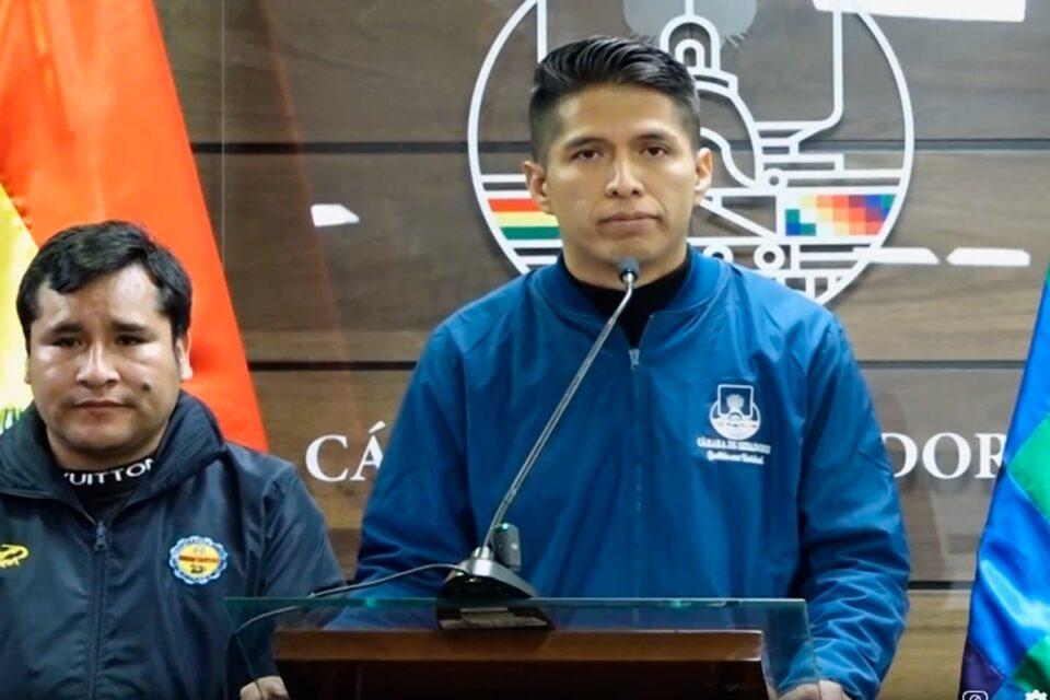 La Paz, 08 de mar 2024 (ATB Digital).- El presidente de la Cámara de Senadores, Andrónico Rodríguez, y el presidente de la Cámara de Diputados, Israel Huaytari, brindaron una conferencia de prensa en la que se comprometen a trabajar conjuntamente, con diálogo y debate de por medio para el tratamiento de proyectos de ley en materia de crédito y prórroga de magistrados.