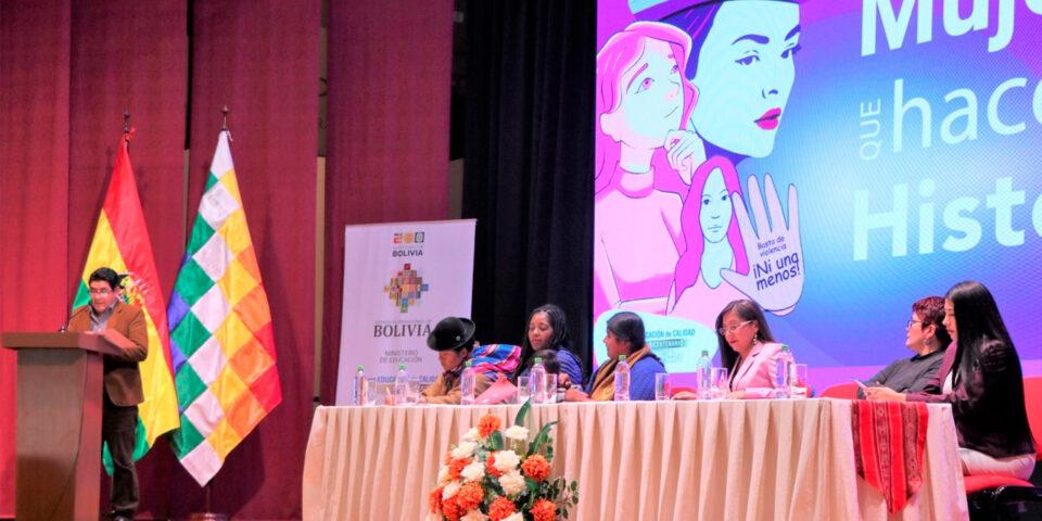 Mientras, la viceministra de Educación Alternativa y Especial, Viviana Mamani, invitada como panelista, habló sobre la temática “Ser mujer en el Sistema Educativo Plurinacional” y resaltó el valor de las mujeres en la historia, reconociendo sus contribuciones y sus luchas por la reivindicación.