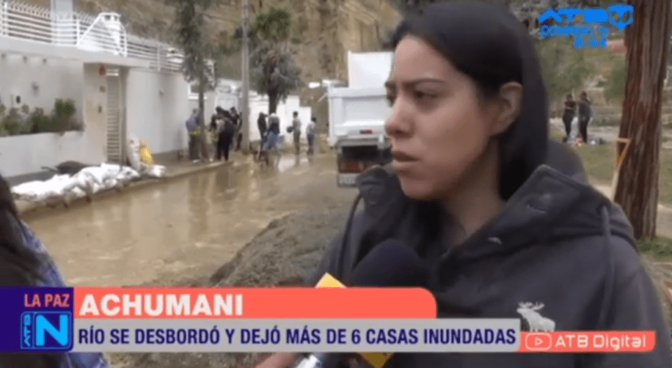 En Achumani más de seis viviendas fueron afectadas durante el desborde de un río. Esta riada dejó el saldo fatal de una persona fallecida y los vecinos tuvieron que realizar la limpieza de sus casas con sus propios recursos.