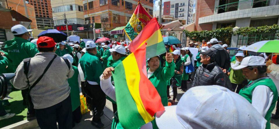 Los comerciantes ambulantes en el estadio Hernando Siles de La Paz protestan para que la casa de la Verde no se traslade a otro departamento o lugar.