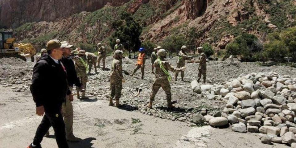 En la ciudad de La Paz, el jueves, el presidente Luis Arce visitó el barrio de El Ramadal, en la zona Sur, donde viviendas fueron afectadas por el desborde del río Irpavi y están en riesgo de desplomarse. Allí un contingente de militares coadyuva a los vecinos en el armado de gaviones y defensivos.
