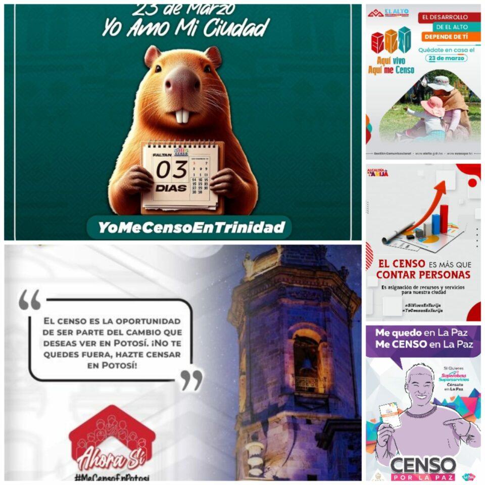 La Paz, 21 mar 2024 (ATB Digital).- A pocas horas para la realización del Censo de Población y Vivienda, los gobiernos municipales de diferentes regiones, de forma particular, en las ciudades capitales, masificaron sus campañas a través de las redes sociales para instar a sus habitantes que se censen en el lugar que residen.