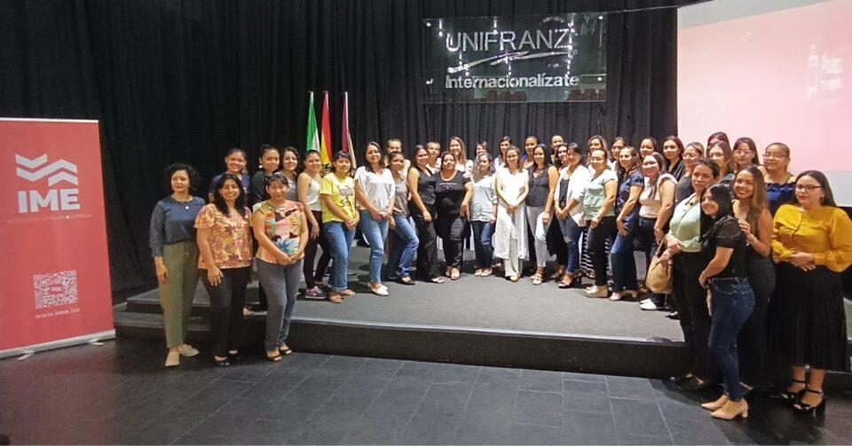 El acto de clausura se llevó a cabo en el auditorio de la Universidad Franz Tamayo, Unifranz, sede Santa Cruz, donde además de las invitadas de honor, participaron los responsables del éxito del programa: el IME, la Fundación Unifranz, y el Banco FIE.