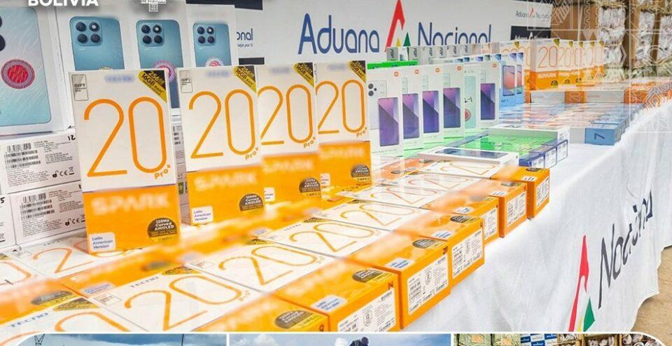 La Paz, 22 mar 2024 (ATB Digital).- En tres operativos realizados durante la segunda semana de marzo, la Aduana decomisó más de 4.000 celulares y otra mercancía de contrabando valuada en más de Bs 7,2 millones, informó la gerente regional de Aduana Oruro, Patricia Trujillo. Hay cuatro personas aprehendidas y serán acusadas por el delito de favorecimiento y facilitación al contrabando.