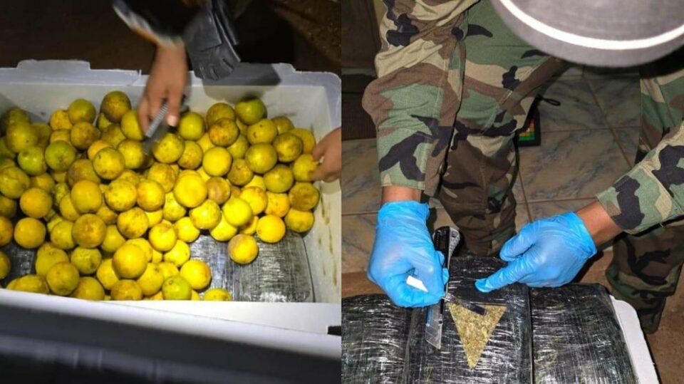 La Paz, 25 de mar 2023 (ATB Digital).- La Fuerza Especial de Lucha Contra el Narcotráfico (FELCN) descubrió una vez más droga escondida en naranjas. De acuerdo con el informe, este hallazgo se produjo durante la realización de controles en la Terminal de Guayaramerín, Beni.