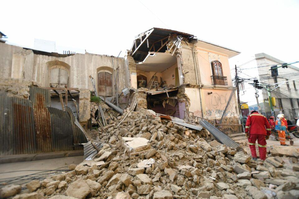 La Paz, 1 abr 2024 (ATB Digital).- A tres cuadras de la Plaza Murillo, en la calle Bueno esquina Comercio, se desplomó este lunes parte de una vivienda patrimonial en La Paz, lo que causó el cierre temporal de las vías.