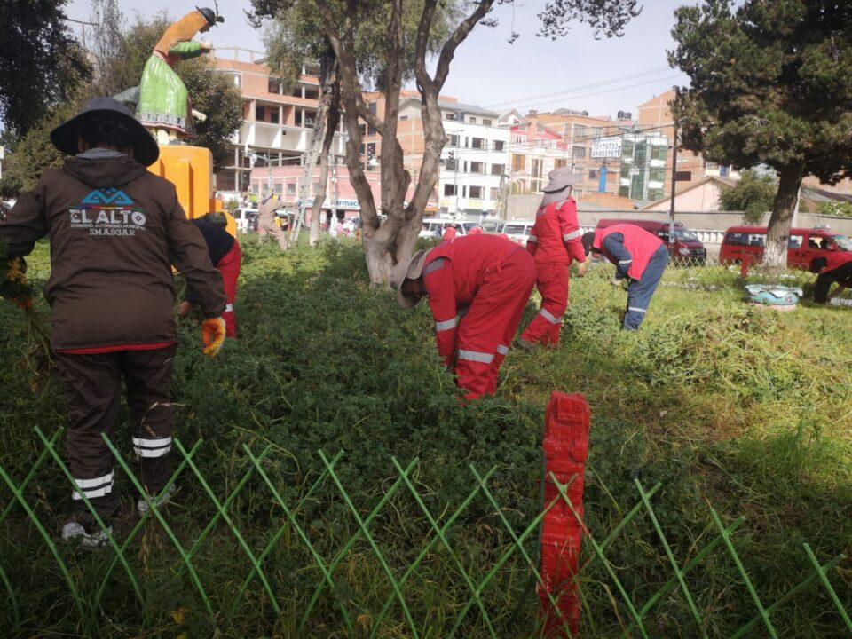 “Estamos programando todos los días en diferentes zonas y avenidas el mantenimiento de plazas y jardineras (…). Hoy hemos programado la plaza del Tinku y Sebastián Pagador y después está programado intervenir todas las jardineras de las avenidas Satélite y Policía”, dijo el director de Áreas Verdes, Marcos Quispe.