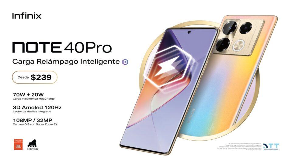 El NOTE 40 PRO es compatible con un cargador inalámbrico MagSafe de 70W+20W, tiene una batería de 5000mAh, una pantalla curva 3D AMOLED con Gorilla Glass y una frecuencia de actualización de 120Hz. Además, cuenta con una cámara trasera de 108MP con OIS y zoom de 3 aumentos, junto con una cámara frontal de 32MP, todo por un precio inicial de $239.