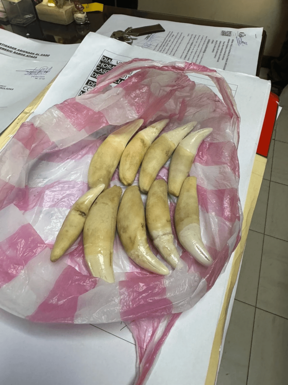 Beni, 01 de may 2024 (ATB Digital).- El Fiscal Departamental de Beni, Félix Balderas, informó hoy que el Ministerio Público inició una investigación por el delito de Tenencia y Comercialización de Animales Silvestre y Tráfico Ilegal de Vida Silvestre, debido a que dos mujeres Roxana R.R. y Katherine M.Y. de 54 y 29 años de edad, respectivamente, fueron encontradas con nueve colmillos de jaguar en la plaza del Aviador de la ciudad de Trinidad, mismos que se presume eran para la comercialización debido a que las sindicadas realizaron una publicación por redes sociales.