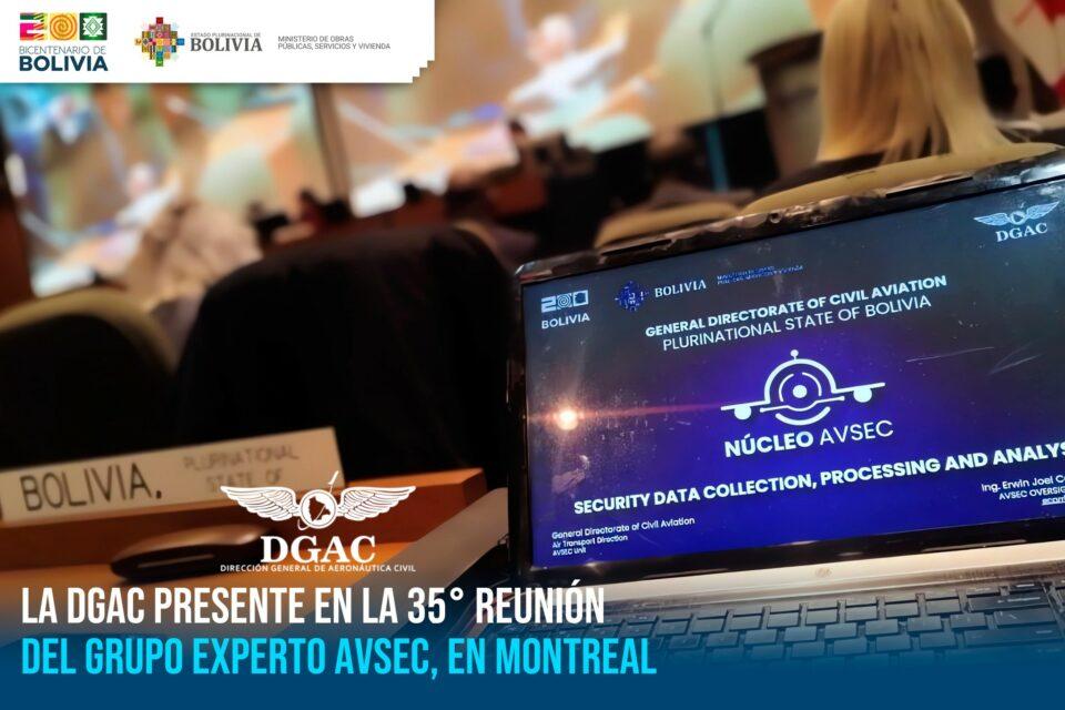 La Paz, 03 de may 2024 (ATB Digital).-La Dirección General de Aeronáutica Civil (DGAC) presentó la Nota de Estudio sobre seguridad aeronáutica en la 35 Reunión del Grupo Experto en Seguridad de la Aviación (AVSEC/35) en Canadá, para encarar la Auditoria USAP-CMA de Seguridad de la Aviación Civil proyectada para la gestión 2025.