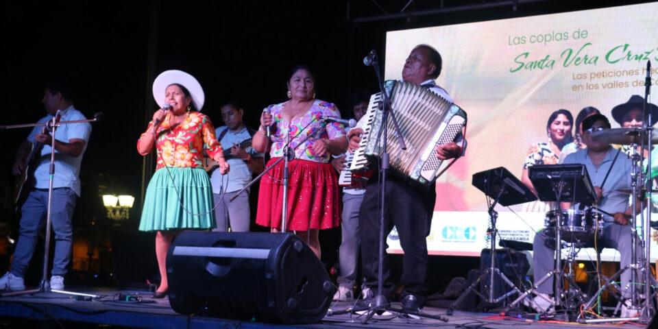 La Paz, 30 de may 2024 (ATB Digital)-. La histórica plaza 14 de septiembre de la ciudad de Cochabamba vibró con las coplas de Santa Vera Cruz Tatala, que es parte de la identidad valluna. La velada cultural fue organizada por el Centro de la Revolución Cultural (CRC), dependiente de la Fundación Cultural del Banco Central de Bolivia (FC-BCB) y la Dirección Departamental de Promoción, Desarrollo Cultural y Turismo de la Gobernación de Cochabamba.