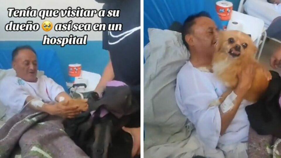 La familia del paciente, identificado como Baudelio Marín, decidió llevar al hospital de manera clandestina a su perrita Catarina. Un video en TikTok muestra el emotivo momento en el que Baudelio, en una camilla, recibe a la perrita escondida en una maleta negra.