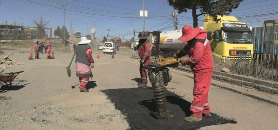 Reparan con asfalto ambos carriles del puente Bolivia en la ciudad de El Alto