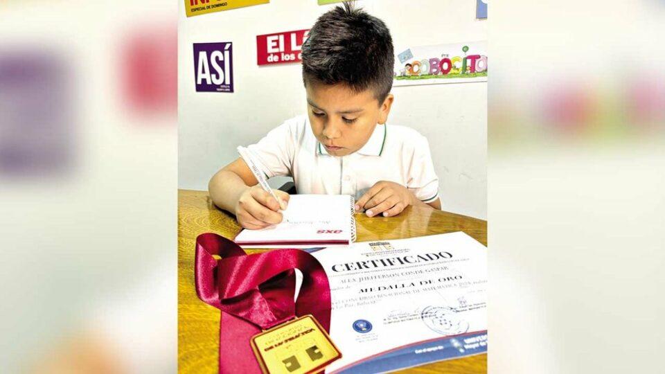El niño cochabambino Alex Jhefferson Conde Gaspar, de 9 años, logró la medalla de oro en el II Concurso Binacional de Matemáticas Perú – Bolivia.