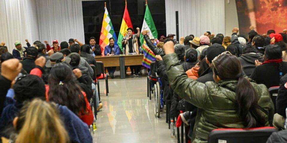 En la reunión participó también la ministra de la Presidencia, María Nela Prada, y el viceministro de Coordinación con Movimientos Sociales, Juan Villca y representantes de diferentes organizaciones sociales, sindicales y vecinales.