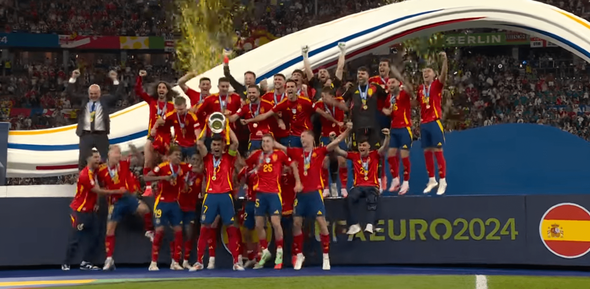 La selección de España se proclamó campeón de la Eurocopa 2024 al vencer 2-1 a Inglaterra en la final que se jugó en el Olímpico de Berlín. Nico Williams y Mikel Oyarzabal marcaron por los campeones, mientras que Cole Palmer anotó el descuento.