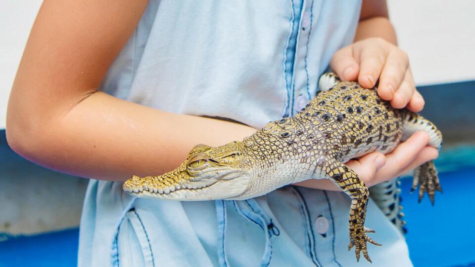 “Estas crías de cocodrilo tienen menos de 15 días. Aún no tienen dientes y, por tanto, no pueden morderte. Sin embargo, no se puede jugar con ellos cuando crecen y tienen más dientes, así como una piel más gruesa”, explicó Kwanrudee Siripreecha, madre de la pequeña y propietaria de un criadero de cocodrilos en el distrito de Tha Takiab, en la provincia de Chachoengsao.