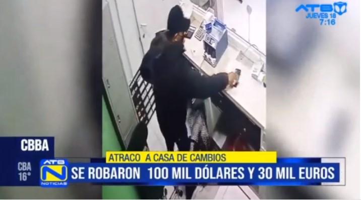 Cochabamba, 18 de jul 2024 (ATB Digital).- Dos ciudadanos extranjeros armados atracaron una casa de cambio en la avenida América de la zona norte, en Cochabamba. Los antisociales irrumpieron el lugar con violencia y se llevaron al rededor de $100 mil y 30 mil euros, tras el atraco los delincuentes se llevaron un celular con el cual la policía realiza el seguimiento.