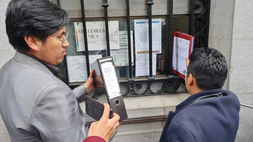 Las nueve carpetas y siete tomos que componen el informe, junto a los documentos de los aspirantes preseleccionados y las evaluaciones, fueron entregados “de manera oficial, en ventanilla única de la Vicepresidencia del Estado Plurinacional de Bolivia”.