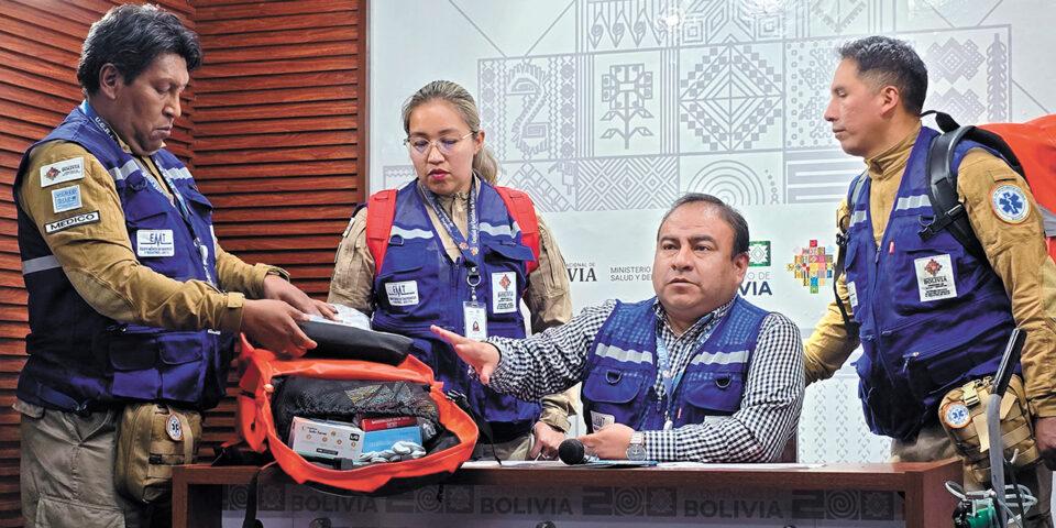 “Nosotros, como Ministerio de Salud, hemos desplazado brigadas desde la anterior semana con un primer contingente, y un segundo equipo hemos enviado este fin de semana con personal técnico especializado, con mochilas tácticas, multieventos y de emergencias, justamente para incendios. Hemos enviado media tonelada de medicamentos, y hoy entregamos al Alcalde de Roboré y al servicio de salud para que podamos atender a los afectados”, informó el jefe de la Unidad de Riesgos, Emergencias y Desastres, Milton Gonzales, en conferencia de prensa.