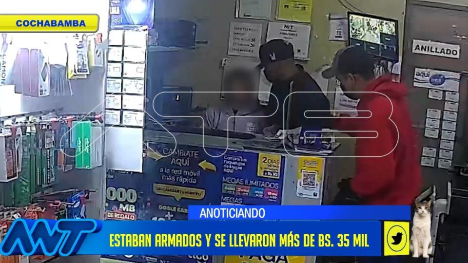 Cochabamba, 06 de ago 2024 (ATB Digital).- En un lamentable incidente de seguridad, dos sujetos armados robaron aproximadamente Bs 35,000 de un negocio en la avenida Santa Cruz, en la zona norte. Los delincuentes encañonaron a una adolescente que atendía el local y se llevaron dinero y tarjetas de teléfono.