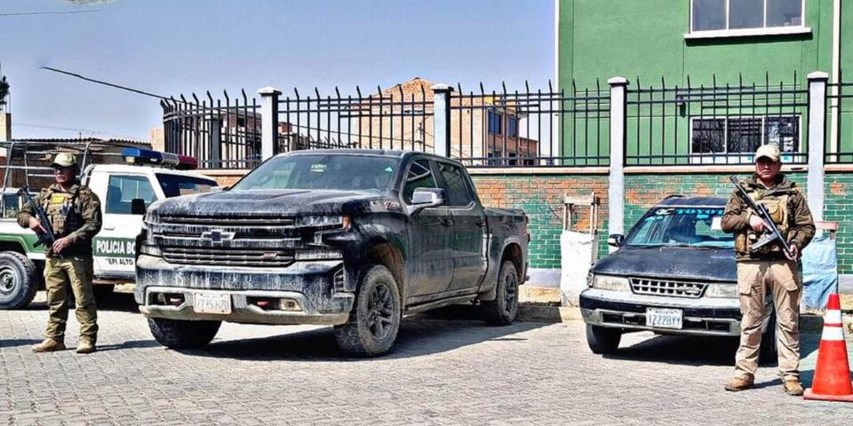 El primer vehículo es una camioneta Mitsubishi, interceptada en el Distrito 7 de la zona Villa Bolívar, en El Alto. Este vehículo fue robado en Chile en agosto pasado.