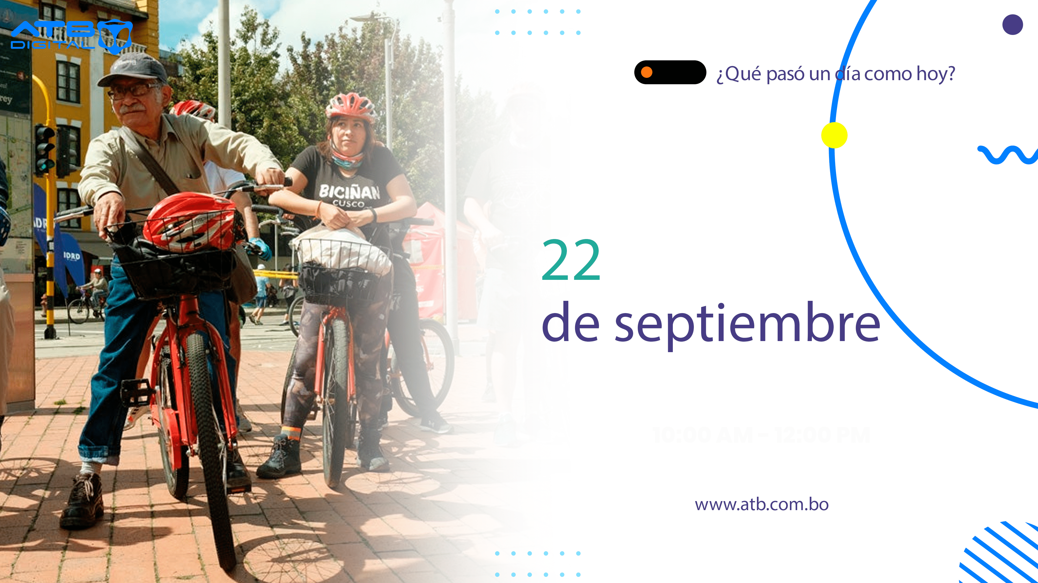 Un día como hoy, 22 de septiembre es el Día Internacional Sin Automóvil, entre otros eventos y aniversarios asociados a la fecha.