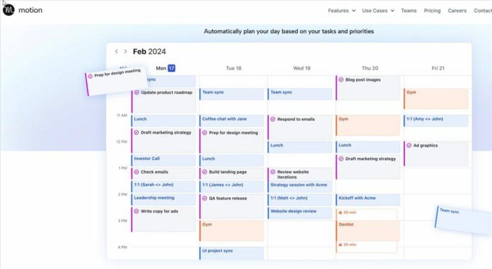 Desde agregar proyectos hasta definir tareas recurrentes, Motion tiene todas las funciones que esperarías de un buen gestor de productividad, pero con un enfoque distinto: aquí, la IA toma el control para optimizar tu tiempo y asegurarse de que completes lo más importante primero.