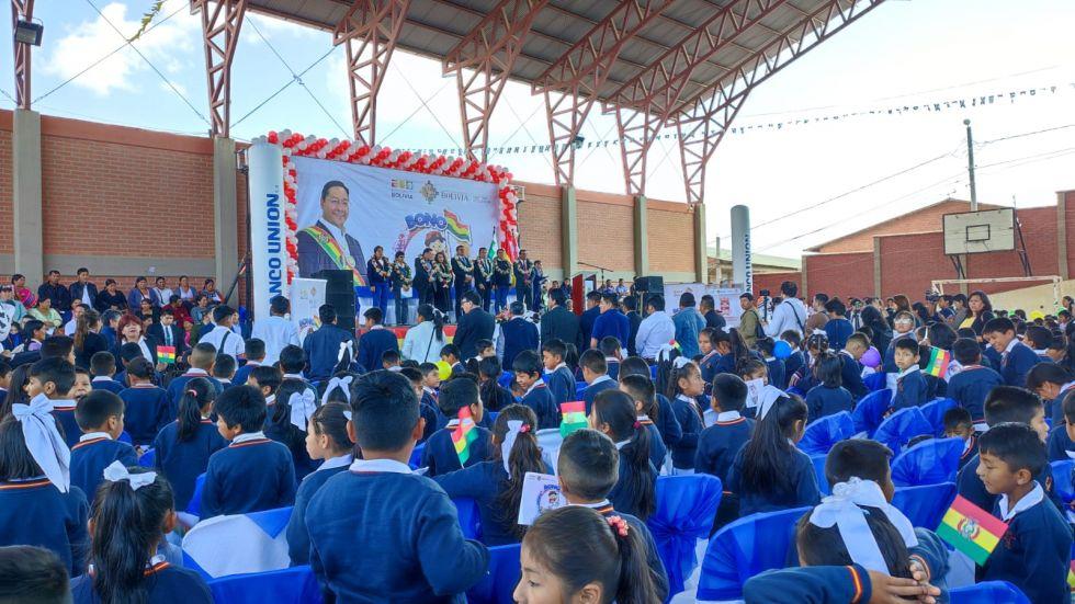 En el país, el presidente Luis Arce inauguró este lunes el pago del Bono Juancito Pinto 2024 en la ciudad de El Alto. Allí destacó que el Gobierno nacional “piensa y cuida a los niños y niñas, porque los niños no se tocan y son nuestro mayor tesoro”.